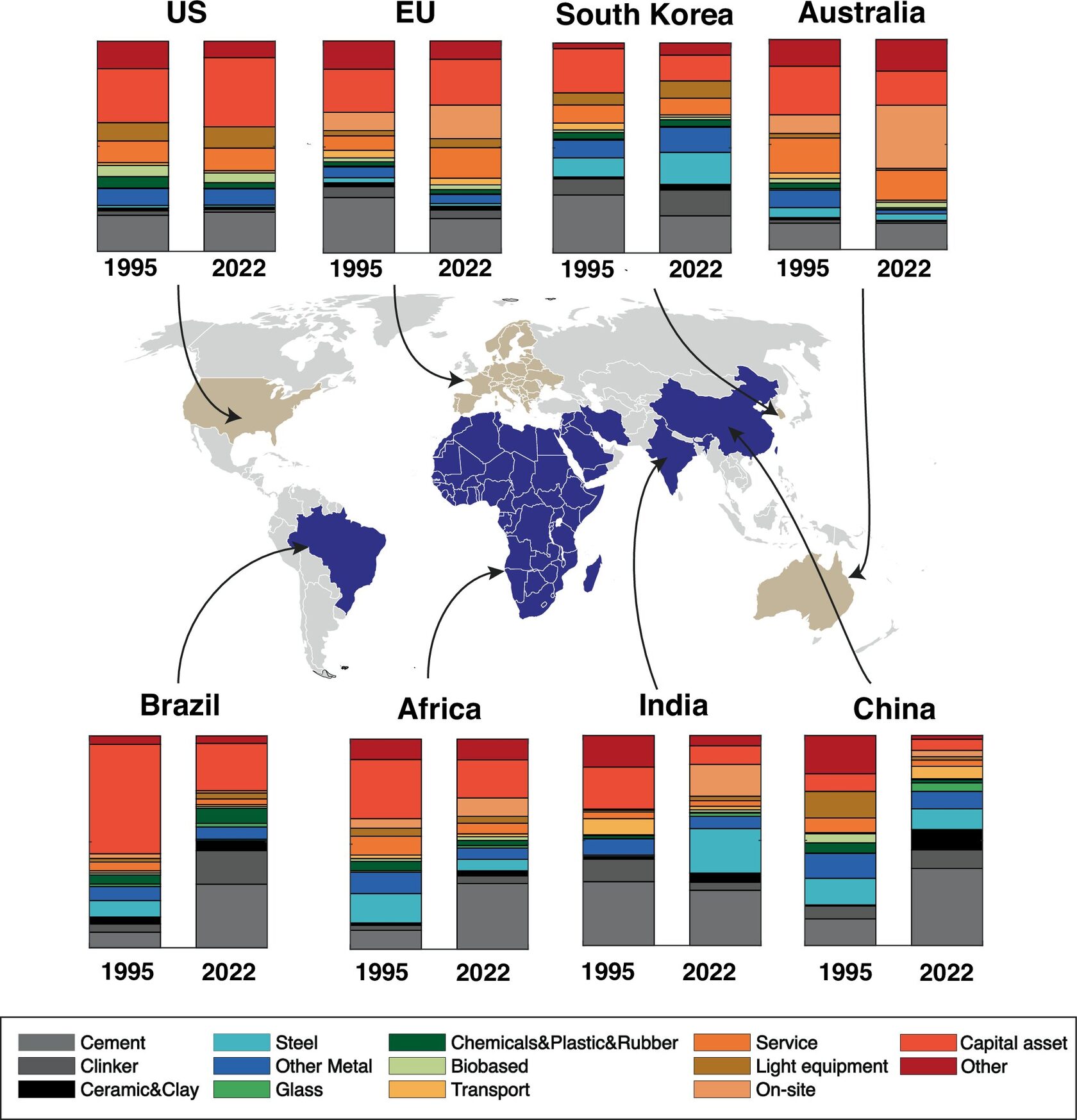 В развивающихся регионах к 2022 году эмиссия подросла: сталь и цемент дают высокий уровень углеродного следа (более 50% выбросов), тогда как низкоуглеродная альтернатива – древесина – стала исчезать из этой сферы.