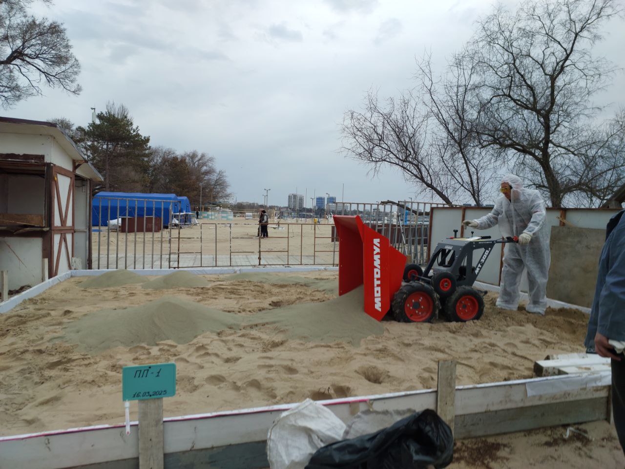 В понедельник 17 марта группа ученых проводит отработку технологии санации пляжа с песком, в котором осталась «сечка» после просеивания песка ручную. Работы ведутся на территории ООО «Курорты Анапы».