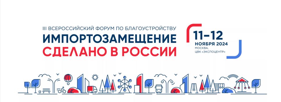 11-12 ноября 2024 года в Москве на территории ЦВК «Экспоцентр» (павильоны №8.1, 8.2) состоится III Всероссийский форум по благоустройству «Импортозамещение. Сделано в России».