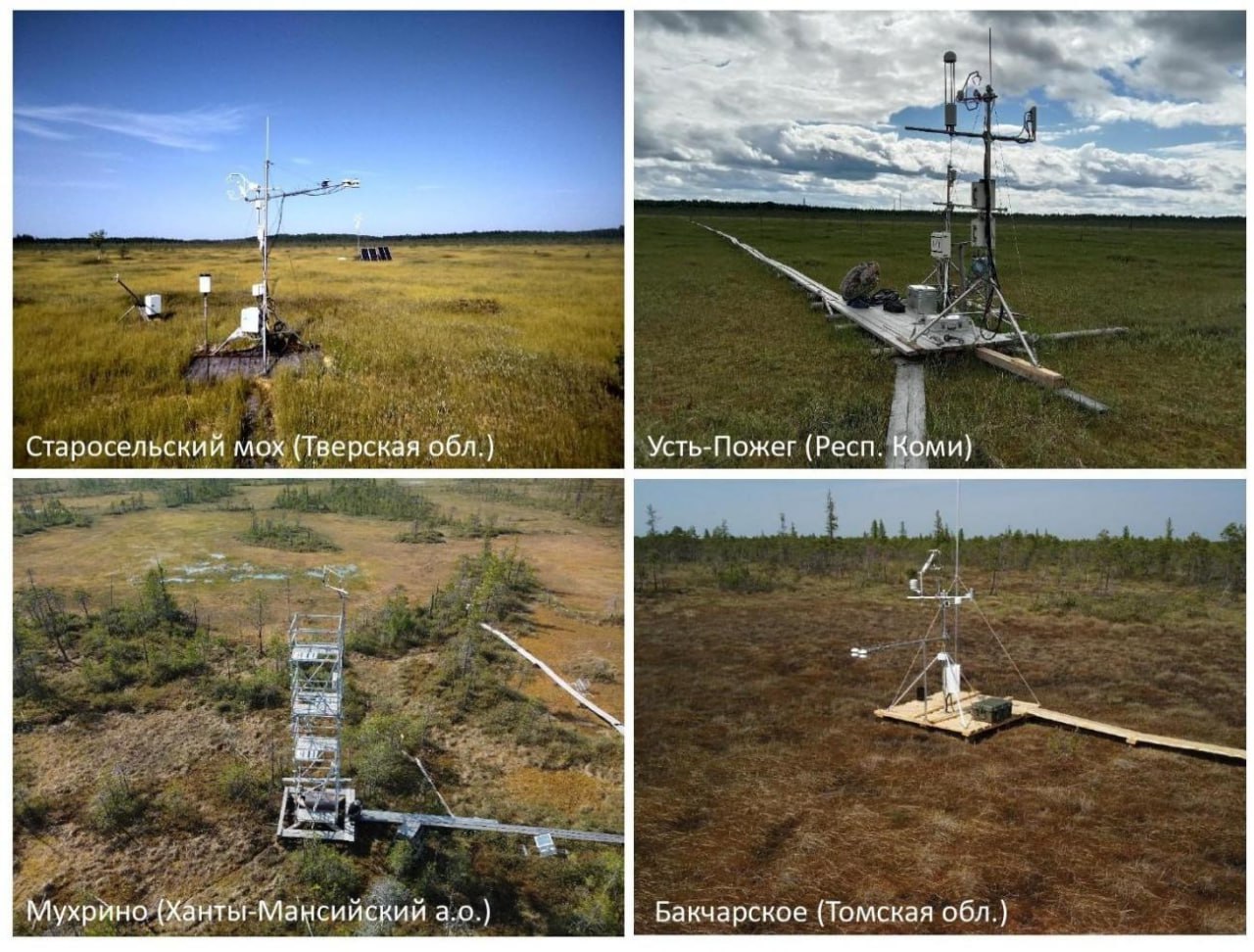 Ученые анализировали данные мониторинга поглощения СО2 болотами Европейской территории России (ЕТР) и Западной Сибири. Наблюдения проводили на 4 репрезентативных торфяниках: 2 из них в южной и 2 - в средней тайге. Полевая информация включала данные по: