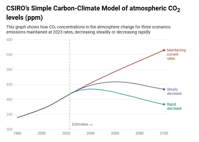 Математическая модель, разработанная CSIRO, показала, насколько существенно должны быть снижены выбросы в атмосферу, чтобы концентрации СО2, наконец, снизились.