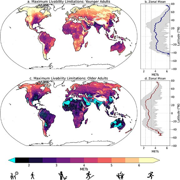 При увеличении глобальной температуры всего на 1 °C ограничения для жизни широко распространены и продолжают нарастать. Это касается особенно серьезно пожилого населения, которое не способно физиологически компенсировать перегрев. А с учетом старения населения Земли эта проблема выглядит особенно острой.